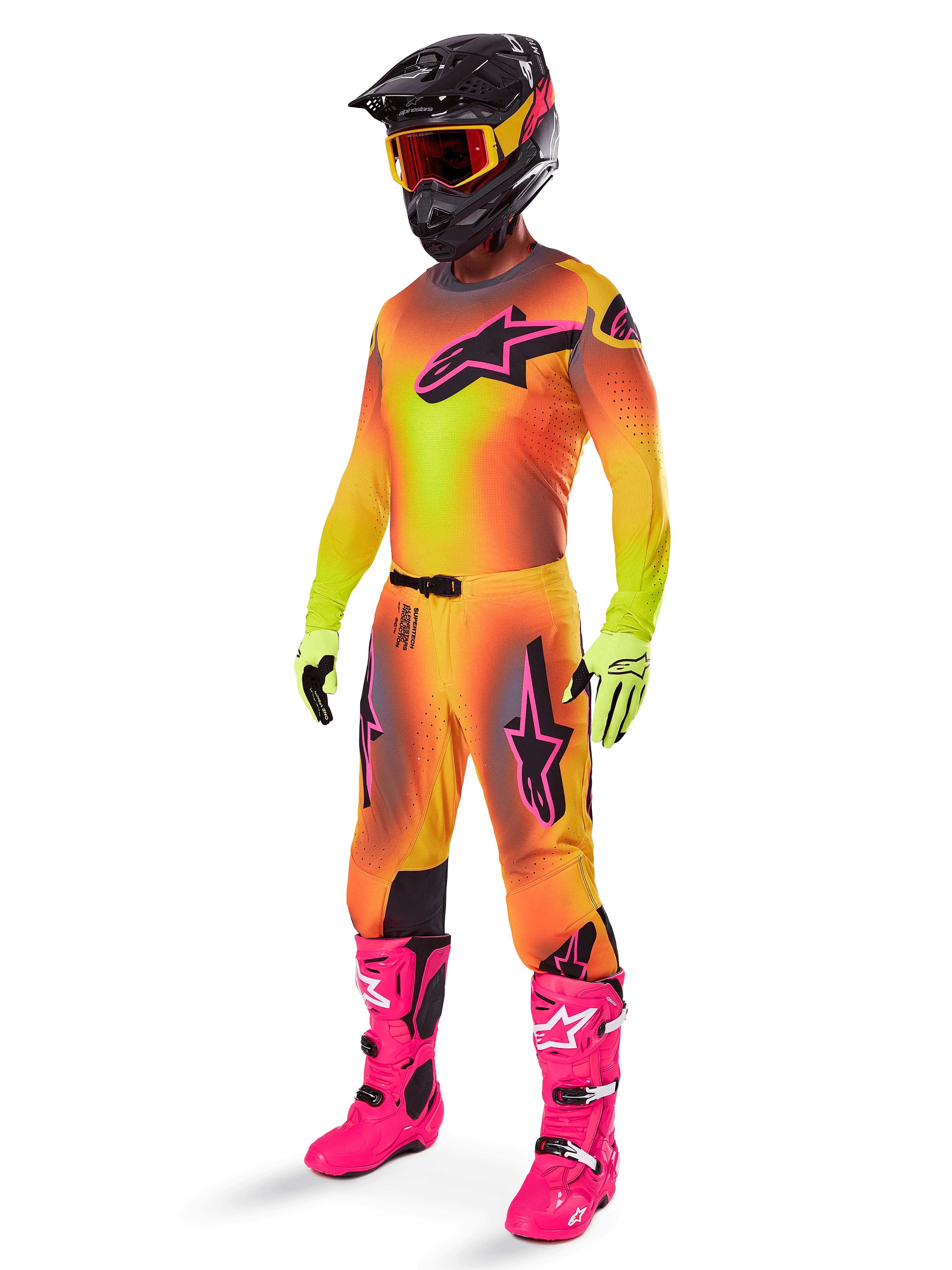 Supertech es la innovadora línea de ropa de motocross de nivel profesional de Alpinestars, diseñada para ofrecer un rendimiento superior en la conducción en tierra. La equipación Supertech ofrece un diseño Factory completo y presenta una serie de tecnologías probadas en carreras de SX y MXGP para niveles óptimos de flexibilidad, libertad de movimiento, ventilación, durabilidad y comodidad.
